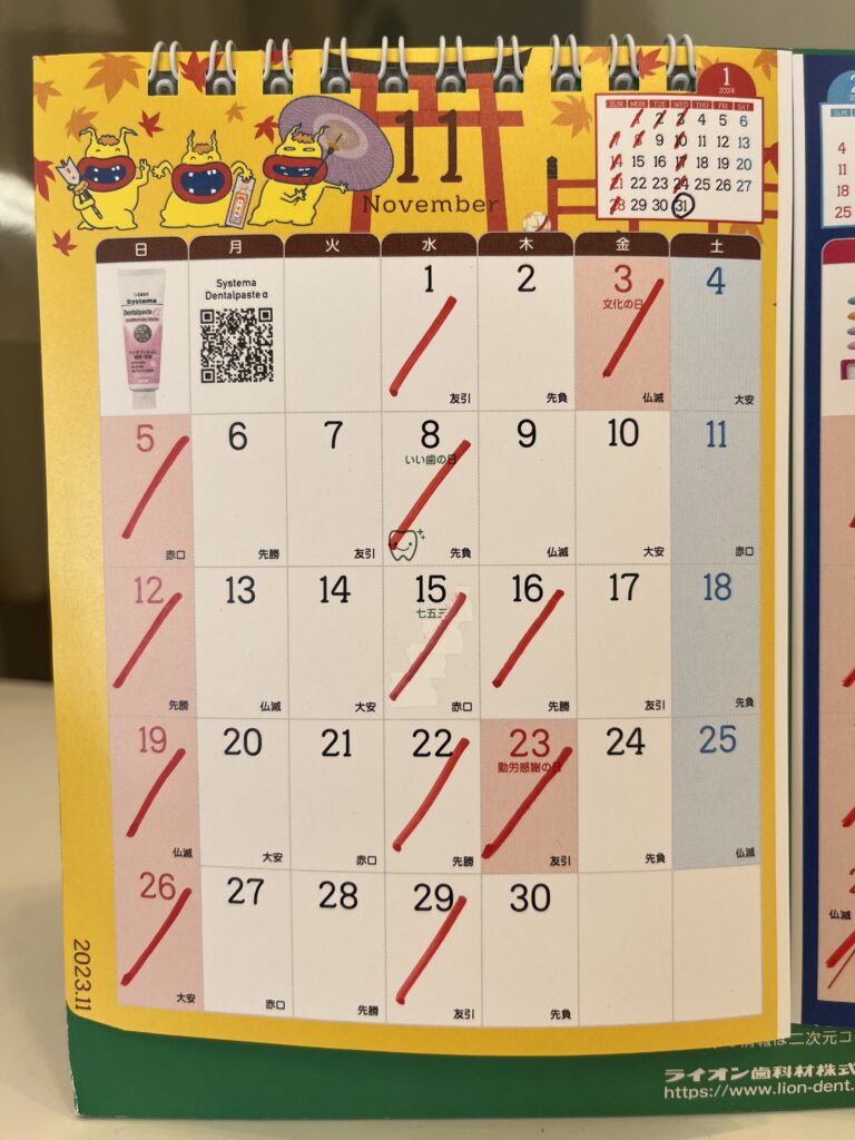 今月は水曜、日曜に加え3日、23日の祝日を休診とさせていただいております。