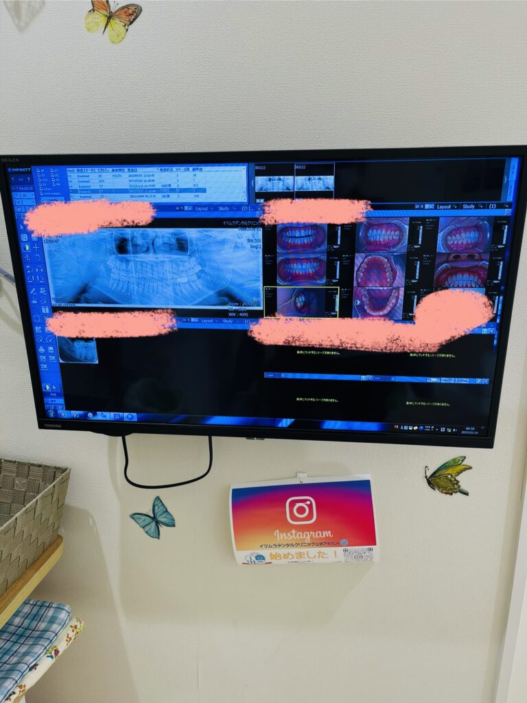 イマムラデンタルクリニックでは、このようなレントゲンやお口の中の記録の写真を撮影し、患者さんへの説明の時に使用しています☺️