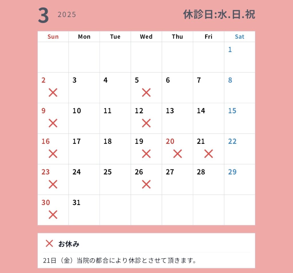 休診日:水曜・日曜・祝日